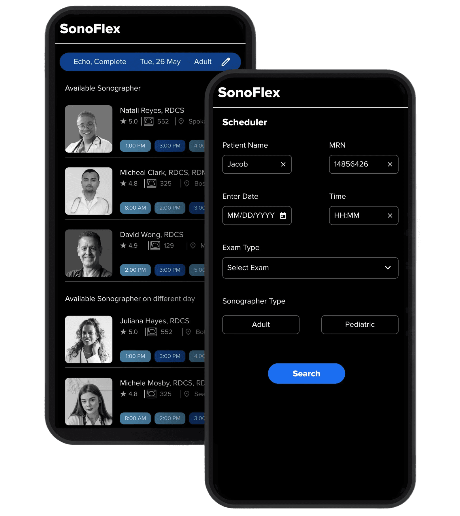 The SonoFlex™ app gives sonographers control over when, where, and how they work. Providers have a booking platform with 24/7 staffing at their fingertips.